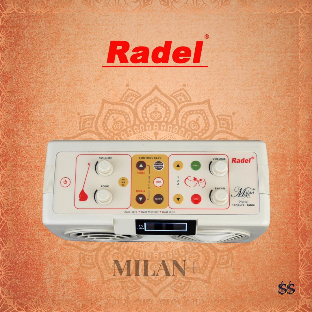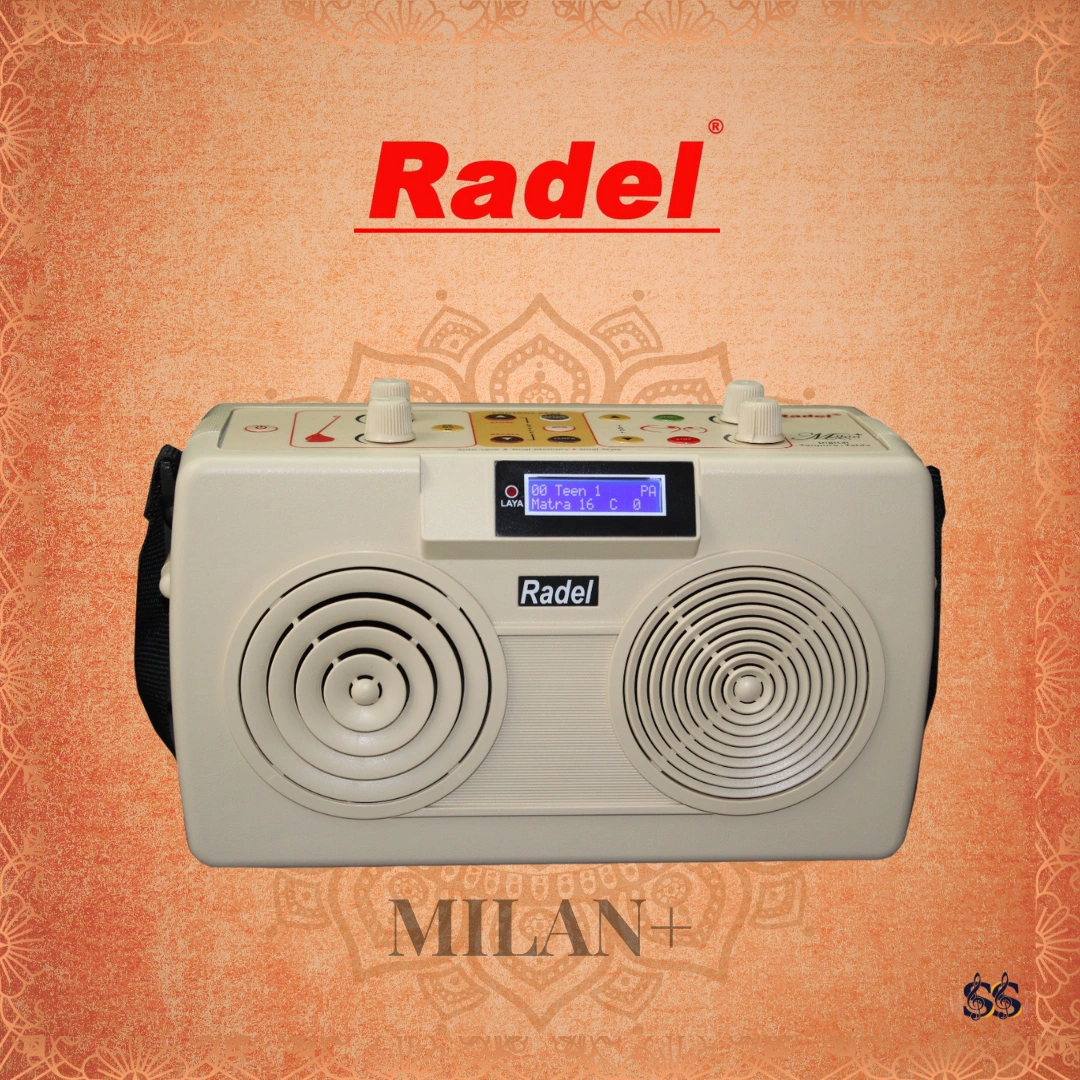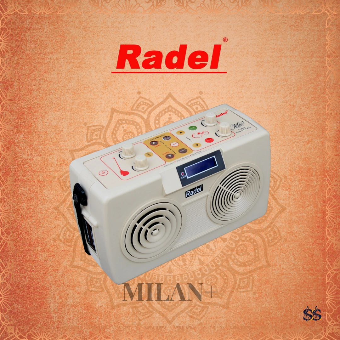 The Radel Milan+ is the first of its kind unique 2-in-1 Digital Tabla-Tanpura with 60 thekas. The new Milan+ is a sophisticated digital musical instrument for providing sur(pitch) and laya(rhythm) accompaniment to performers of Indian music. It incorporates state of the art technology to produce natural and realistic Tanpura and Tabla sound, encompassing 60 thekas in various taals, in one compact product.