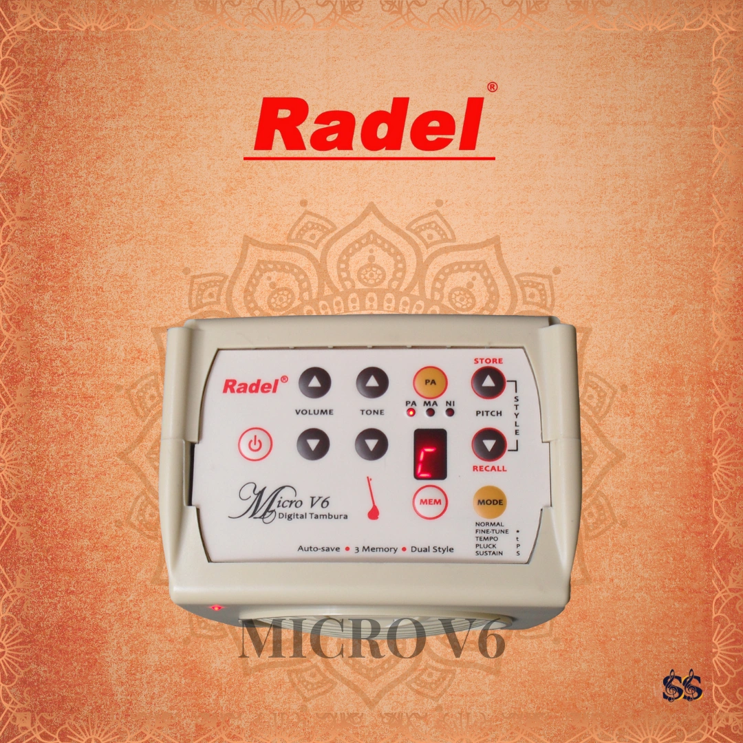 The new Saarang Micro V6 digital tambura (tanpura) is the ideal choice as an entry-level tambura for students, and very useful for teachers. It produces a realistic simulation of a 4-string tambura.